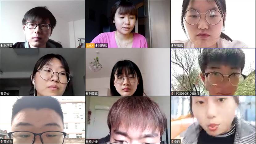 每位同学早早都加入会议之中,通过视频、音频和文字来把本次会议主要内容传达给班级每们同学。会议刚开始,班长刘乃豪向每位同学传达辅导员张瑞红老师对学生的关心和关爱之情,并且希望每位学生尽量避免外出。随后,班长刘乃豪同学对大家关于返校纪行问题进行强调,绝对不能提前返校,并对返校途中的种种事项做重点提醒,做到按要求平安返校。最后向每位同学传达返校后的有关要求,同学们表示清楚学校相关规定,并一定能按要求完成。最后,团支封玙欣希望每位同学要加强思想文化学习,多关注疫情发展、党的各项方针,学习党和团的相关精神。