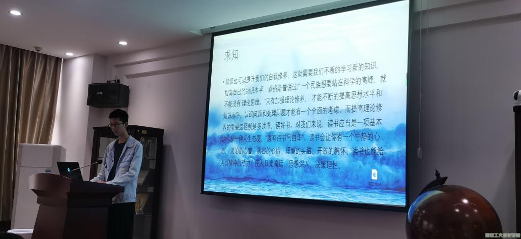 此次学习会主要从“自律”“自信”“求知”以及“对情绪的控制”四个方面展开。学习会的主题由一个视频引入,直观引导参会成员的思维与学习会同步。随后,各部门就学习会的内容发表自己的感想,干部张星、刘晨宇表示在此次学习会中学到的最行之有效的部分便是如何掌控对自己的情绪,除了学习会中提到的几点以外,效率对于团学干部来说也是非常重要的一点,他们还表示自身修养得到了全面的提高,才能张扬自信,树立形象,自我价值与个人发展得到一个很好的体现。最后,学生干部王梦豪对此次学习会进行总结,他强调到无论在什么情况下, 大家都不要自暴自弃,应该好好地珍惜自己, 好好地修养自己的身心,提升自我价值。