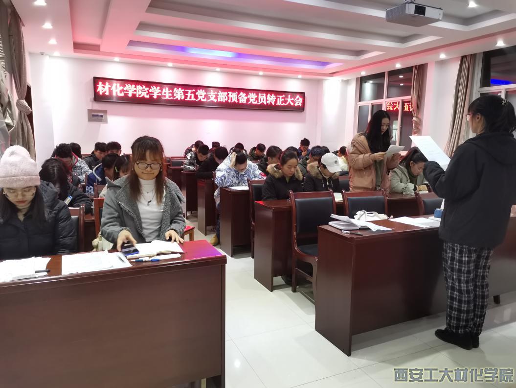 2020年12月2日至5日,材化学院学生第五党支部于工3-404会议室召开预备党员转正大会,就预备党员按期转正进行讨论并履行程序,本次转正的预备党员是饶模松等8名同志。党支部书记乔娜、全体学生党员和本次转正的预备党员出席本次会议,会议由支部副书记张思雨同志主持。