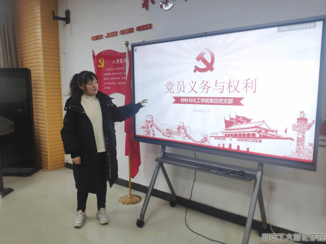 会议伊始,徐慧子为支部新发展党员发放政治生日贺卡,封玙欣带领新党员宣誓,老党员重温入党誓词。在铿锵有力的宣誓声中,大家对党组织的归属感又加深了几分。随后,预备党员赵欣与谭景昱作“党员的权利与义务”专题学习报告,通过党章内容的讲解以及案例分析,让大家对党员的权利与义务有了更深层次的认识与理解。