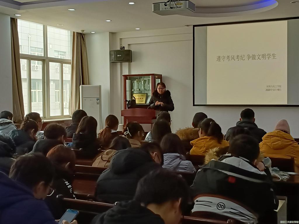 为了进一步加强考风考纪建设,确保期末考试的顺利进行,材化学院2018级于2020年12月20日在工3-404开展“遵守考风考纪 争做文明学生”主题教育会。会议由辅导员张瑞红老师主持,2018级学生参与会议。