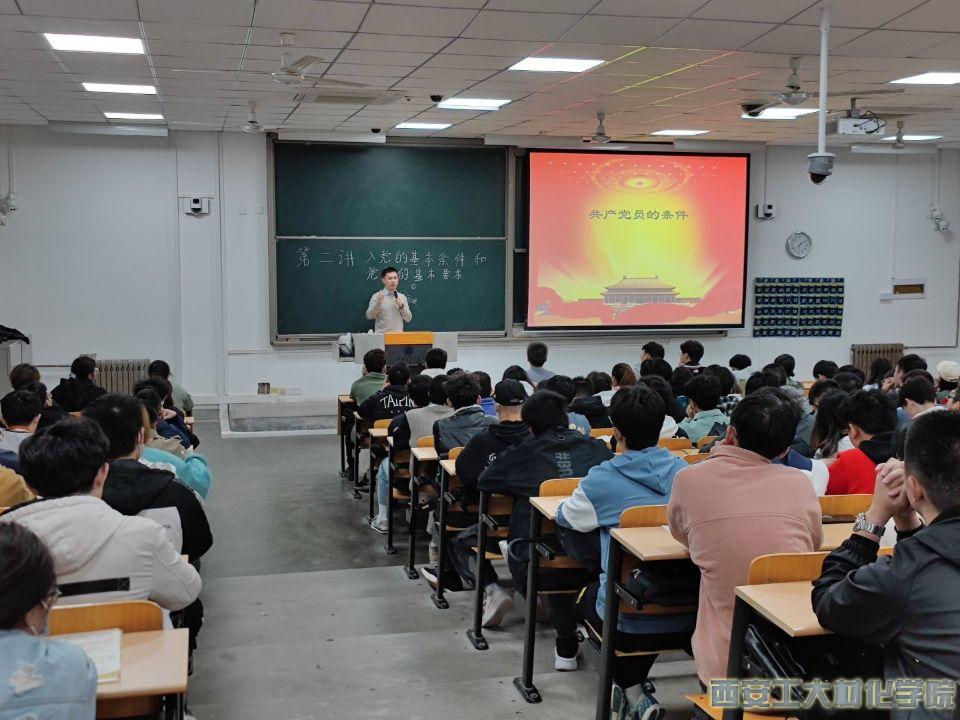 于教1-201开展入党积极分子培训班第二次授课。本次授课由学工部学生教育科副科长韩霄开讲,全院170余积极分子参加。