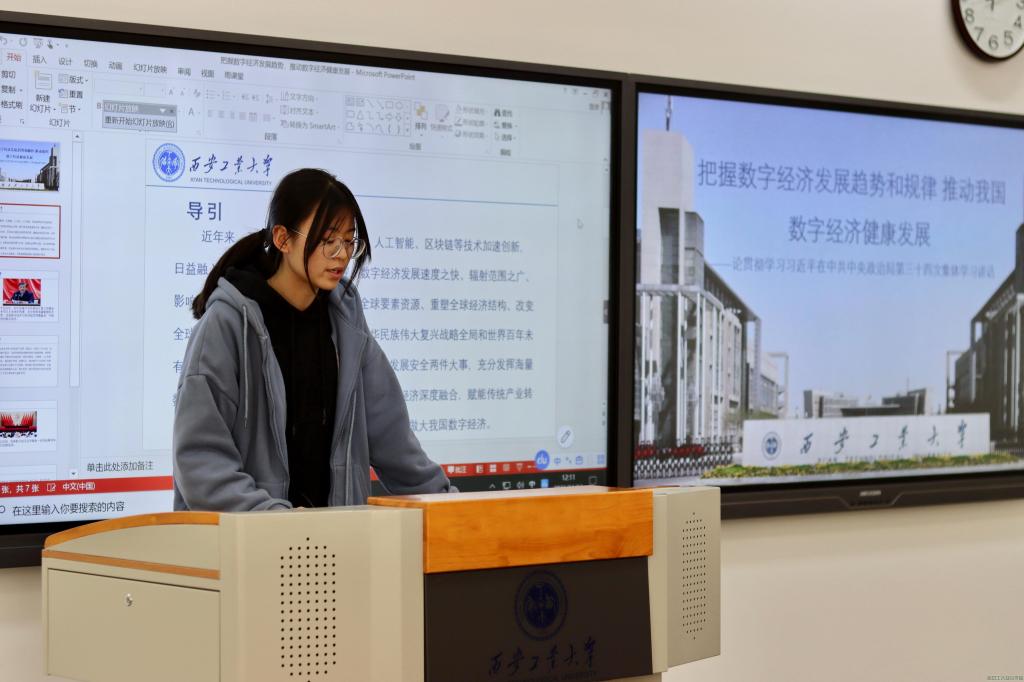 会议初,学生干部张子椰讲解作为新时代青年学习习近平总书记在中共中央政治局第三十四次集体学习中的重要意义,提高大家对数字经济的重视,呼吁大家把握革命机遇,并带领大家集体学习发展数字经济的战略选择、核心技术攻关内涵、加强新型基础设施建设布局、完善数字经济治理体系等会议内容。学习过程中,大家了解到了数字经济在抗击疫情、恢复生产等国家大事中的作用,看到了数字经济对中国发展的利端。会议后,大家分享了对本次理论学习会的见解,纷纷表示会努力朝着国家改革方向去靠拢,争作未来国家发展的中坚力量。至此,会议圆满结束。