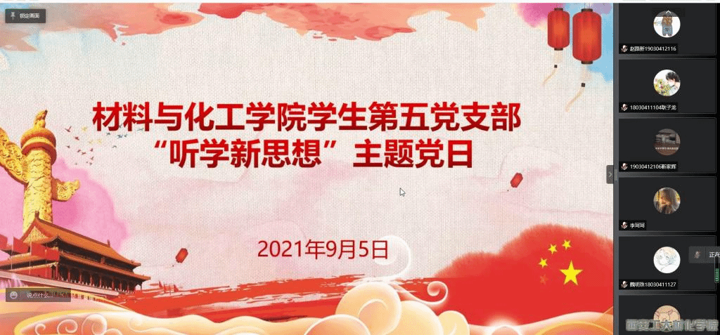 学生第五党支部于2021年9月5日举行“听学新思想”云党课暨主题党日活动线上学习会议,全体学生党员按时参会。