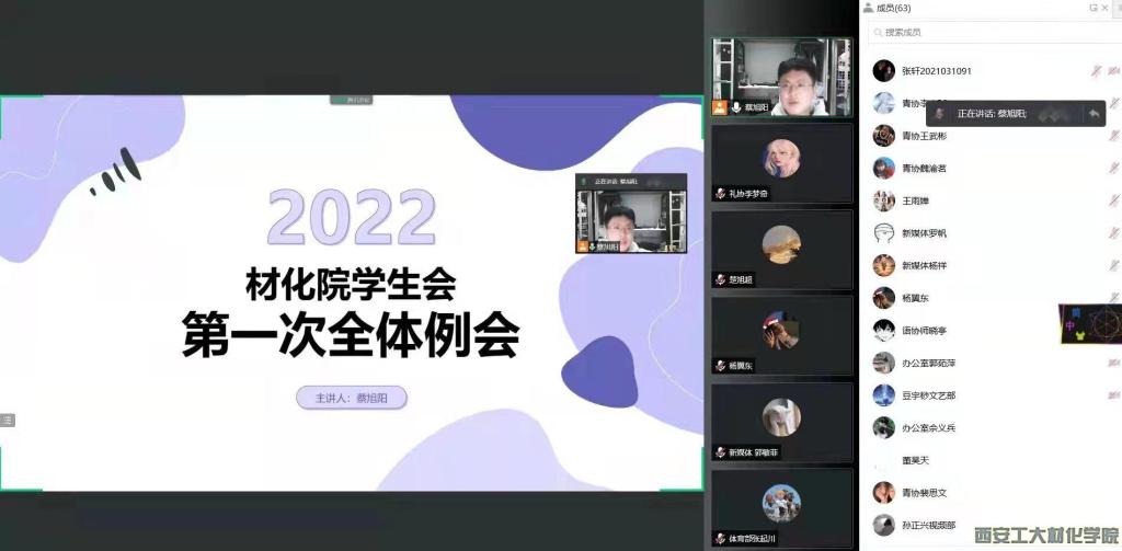 于2022年3月16日在线上召开学生会本学期第一次工作例会。会议由学生干部蔡旭阳主持,学生会全体成员参会。