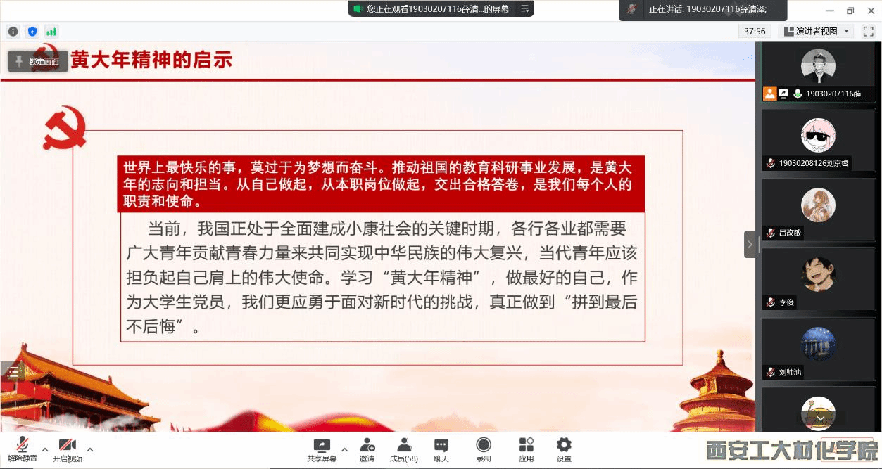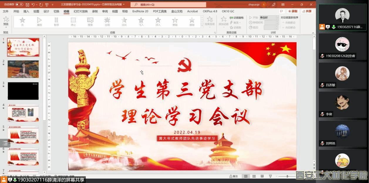 学生第三党支部在腾讯会议召开学习黄大年式教师团队先进事迹大会。支部书记段强老师以及支部全体党员参加此次会议。