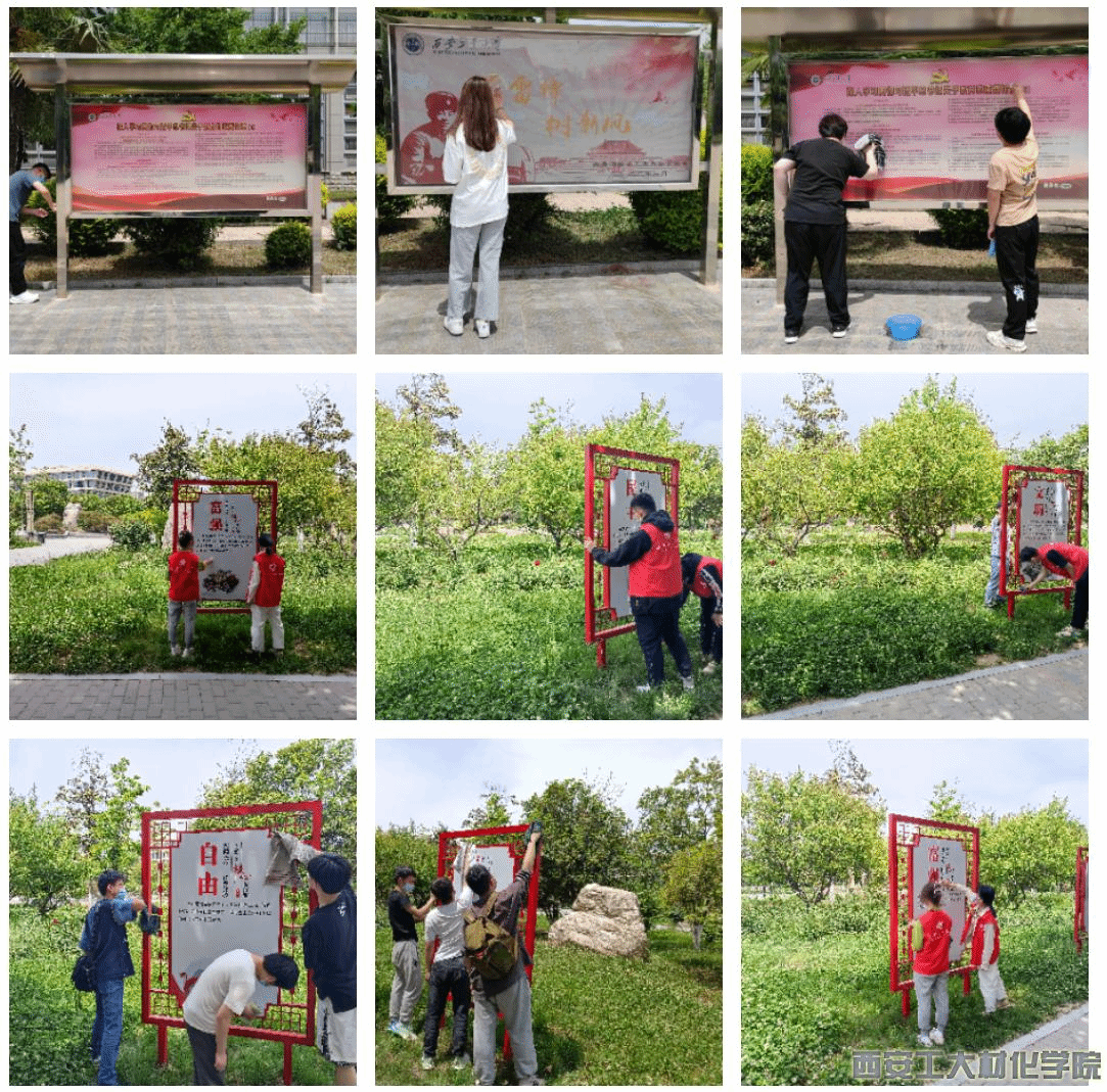 活动开始前,青年志愿者协会对所有参加活动的学生志愿者进行分组并组织签到,同时了讲解志愿活动的整体时间、区域等内容安排。活动过程中,志愿者们携带工具认真地擦拭着校园内的展板与橱窗,确保橱窗内容可以清晰地呈现给学生,尽自己努力推动学校宣传教育工作的开展。同时,志愿者们自发对橱窗周围的杂物进行了清理,努力营造出干净整洁的校园宣传环境。活动结束后,工作人员组织志愿者合影留念,展示材化学子积极向上的精神风貌。