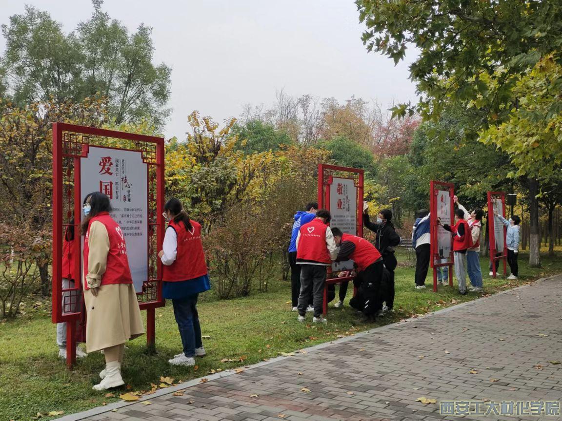 青年志愿者协会于2022年10月27日开展"洁校千章,净心万路"校园志愿服务活动。青年志愿者协会成员与20级,21级贫困生参与活动。
