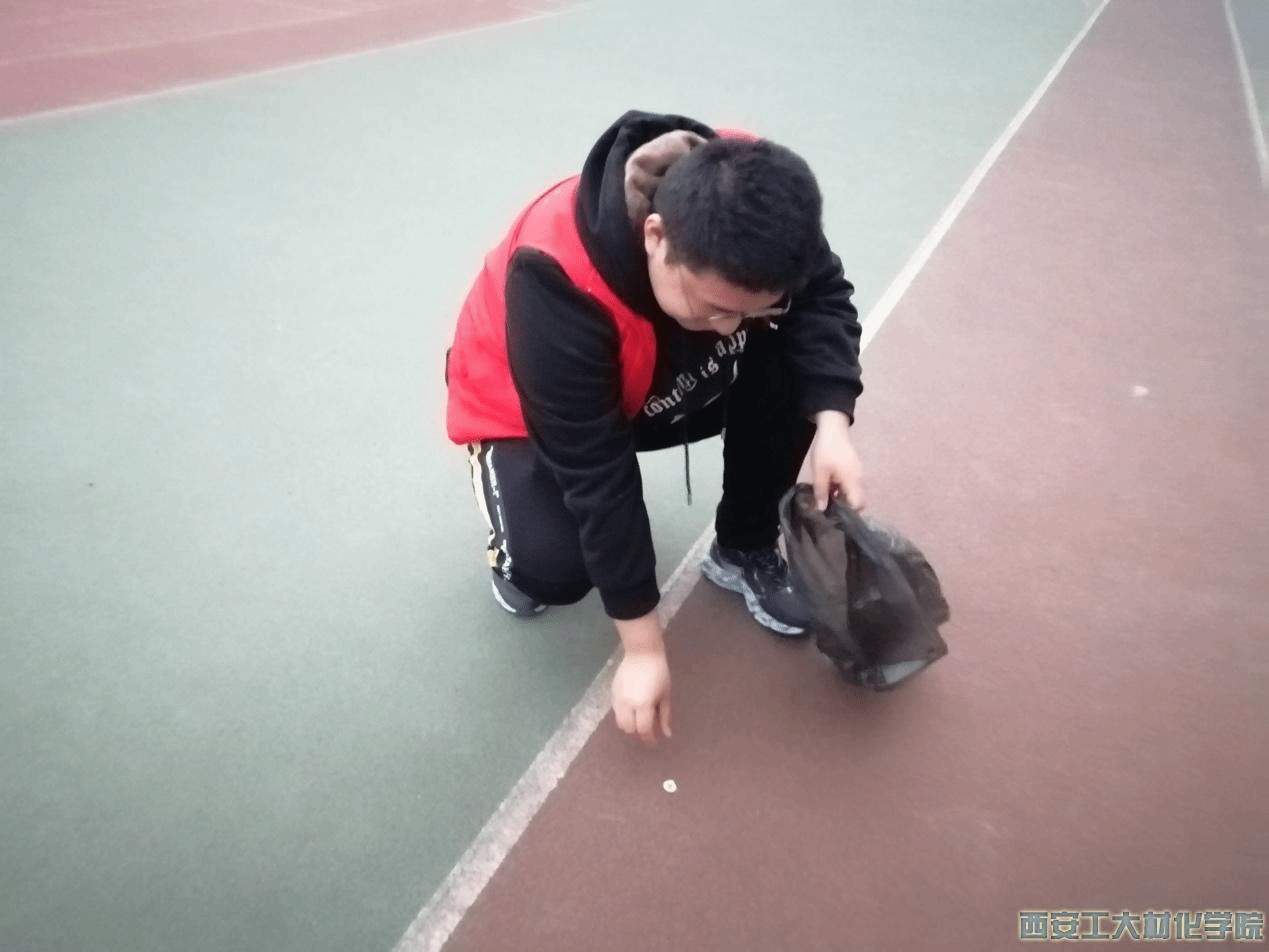 活动开始,支部党员志愿者统一服装后,按照区域划分对田径场内乱丢的垃圾进行收集,并引导进行体育活动的人员把垃圾丢到垃圾桶。整个活动中志愿者们积极热情,严谨细致地到每个角落捡拾垃圾,分工协作,井井有条,将田径场上散落的垃圾收集装袋,美化了田径场的环境,增强保护环境的主人翁意识。通过集中开展校园卫生清理和美化整治活动,进一步巩固学校文化建设成果,引导支部党员树立正确的环保意识。活动中,党员志愿者面对乱丢垃圾的同学进行倡议,引导学生文明丢垃圾,提升素质意识,建设更加美丽的校园,借助自己的行动倡导同学们关注校园环境,爱护学校卫生。