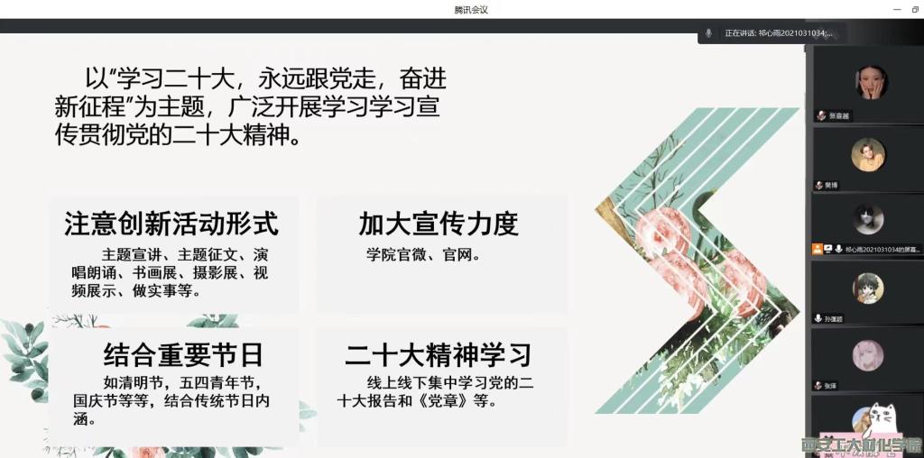 团委于2023年2月1日晚19:00于线上召开新学期第一次例会。本次会议由学生干部祁心雨主持,团委全体学生干事参加会议。