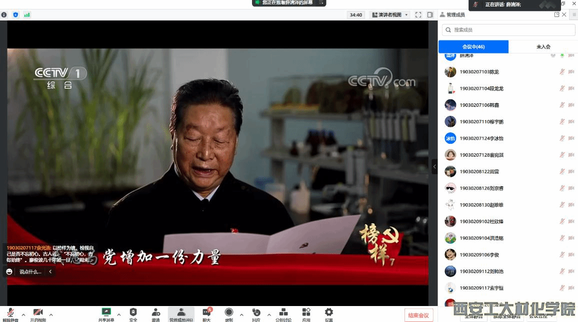 学生第三党支部于腾讯会议开展《榜样7》专题节目观影活动。支部书记段强老师以及全体党员参加此次会议。