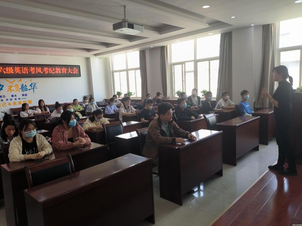 2019级于3月10日下午15时于工3-404召开英语四六级考试考风考纪教育大会,本次会议由材化学院2019级辅导员乔娜主持,2019级参加3月12日英语四六级考试的全体同学参加会议。