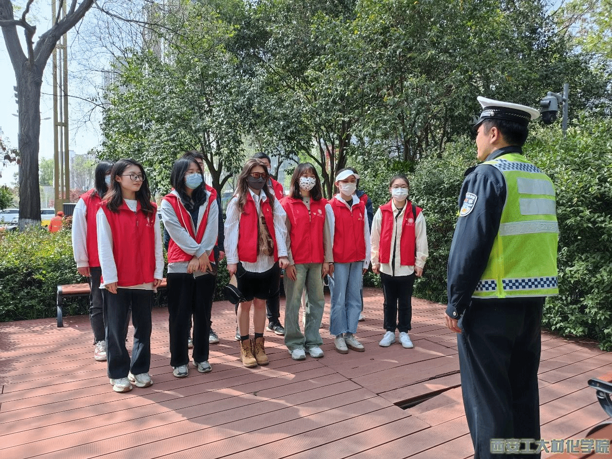 活动伊始,志愿者身着志愿服和党徽到达西安市未央区凤城八路交警岗位示范亭,交警赵同志对于学生党员一行目的表达热烈的欢迎,并为全体党员志愿者做了简单的岗前培训,了解学习交警日常执勤工作。随后,全体党员志愿者们分为两组,在四个岗口轮流协助交警对骑乘电动车、摩托车不佩戴安全头盔等不文明交通违法行为进行现场查处,规范交通秩序,引导市民有序通行,及时制止不文明交通行为,志愿者们认真负责、专心指挥、热心帮助,赢得市民的广泛好评,保持很高的热情,发扬坚持不懈、克服困难的精神。交警王同志对全体志愿者的志愿工作表示认可和感谢,并利用此次志愿服务活动为在场的大学生党员普及交通违法行为的安全知识,并提醒大家可以在学校普及一些安全法内容,提醒更多的学生外出自觉遵守交通法规,安全文明出行。活动后,每位学生党员发表关于遵守交通法规和交通普法宣传的感悟心得,党员志愿者们通过本次志愿服务活动,弘扬志愿精神,增强文明交通意识。