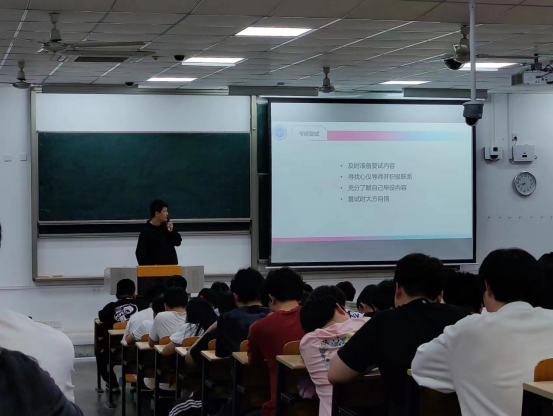 会上,2019级材料化学专业吴诗宇、金属材料工程专业李家琦、高分子材料与工程专业杨怡丹、环境工程专业张鑫蕊、无机非金属材料专业常金辉分别从考研前期准备、合理安排复习进度、选择院校,调整心态、复试内容及方法等分享了自身考研经历及经验。