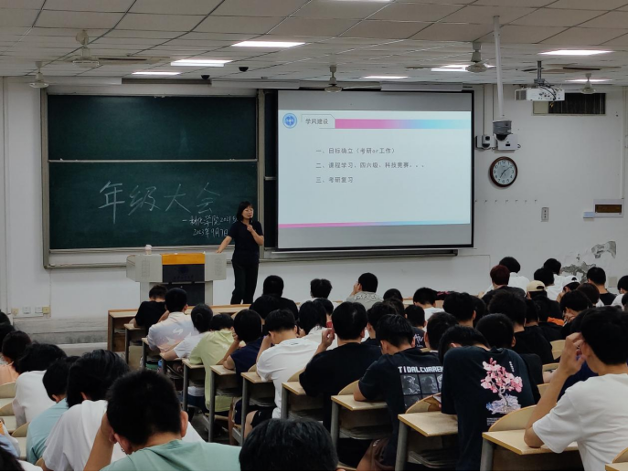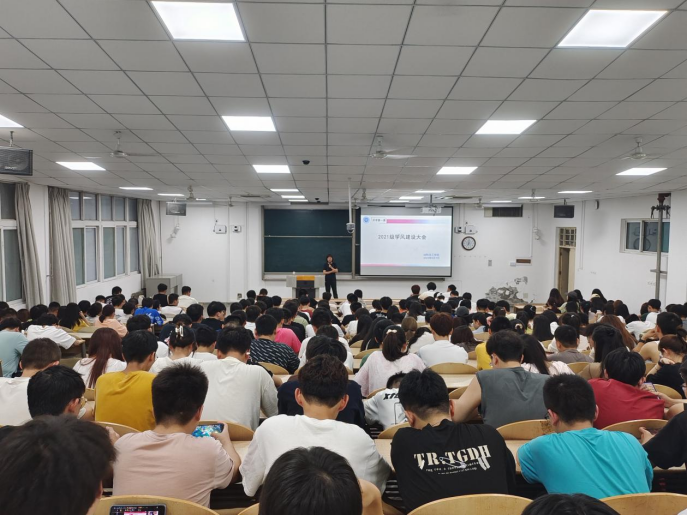 2021级于9月7日晚召开年级大会,本次会议由辅导员刘强珺老师主持,2021级全体学生参会。