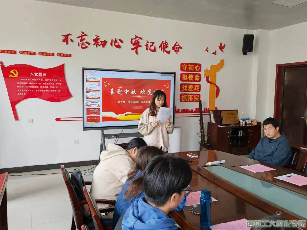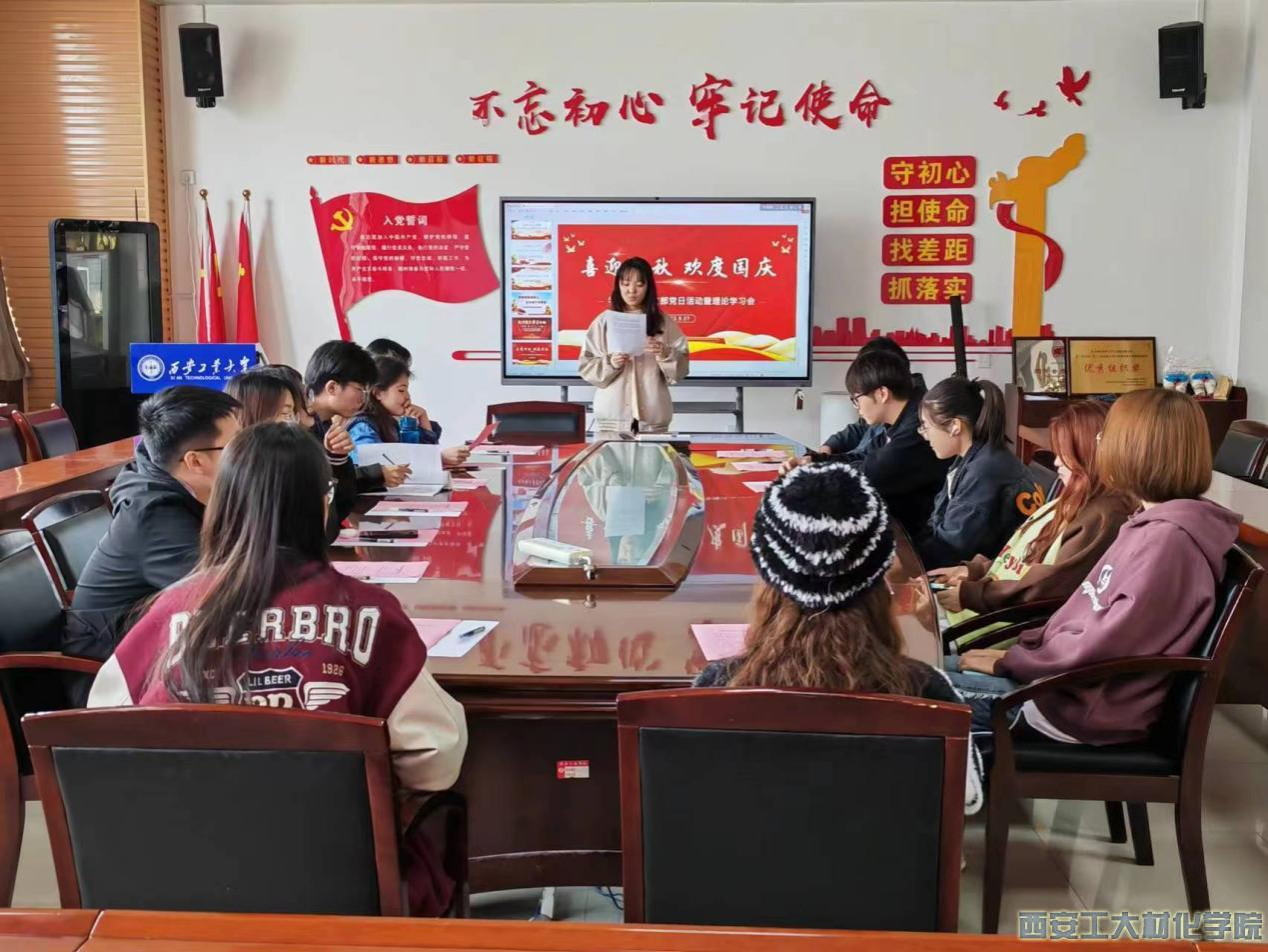 学生第三党支部于工3-410会议室开展围绕祖国各地花团锦簇欢庆国庆党日活动。支部书记段强老师以及全体党员参加此次会议。