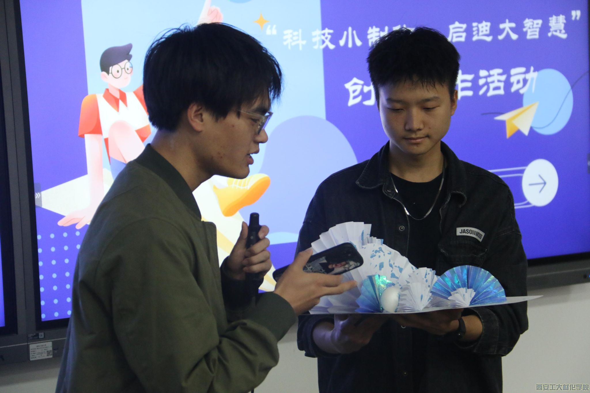 科学技术协会主办的“科技小制作,启迪大智慧”创意制作活动在教2-104顺利进行。本次活动面向全校同学,共有100名学生参与其中。