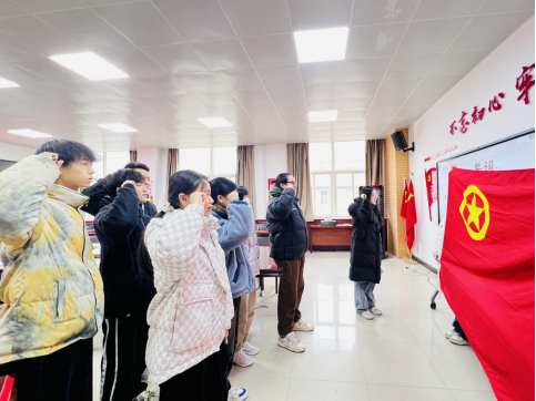 随后,新团员排列整齐,以挺拔的身姿和坚定的目光,在团旗前庄严宣誓。任文朝同学代表新团员发言,他表示,要以更加坚定的信念投身团组织,不断完善自我,力争成为优秀的共青团员和德才兼备的人才。在风采展示环节,全体新团员集体诵读《满江红》,铿锵有力,热情饱满。最后徐慧子老师对新团员的加入表示热烈祝贺,殷切希望新团员严格要求自己,牢牢树立政治意识和纪律意识,并强调,各位新团员要弘扬优良传统,发挥团员的先锋模范作用,履行团的义务。