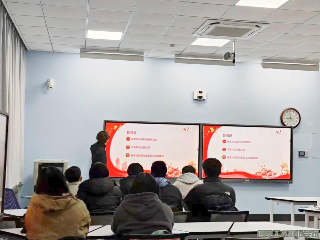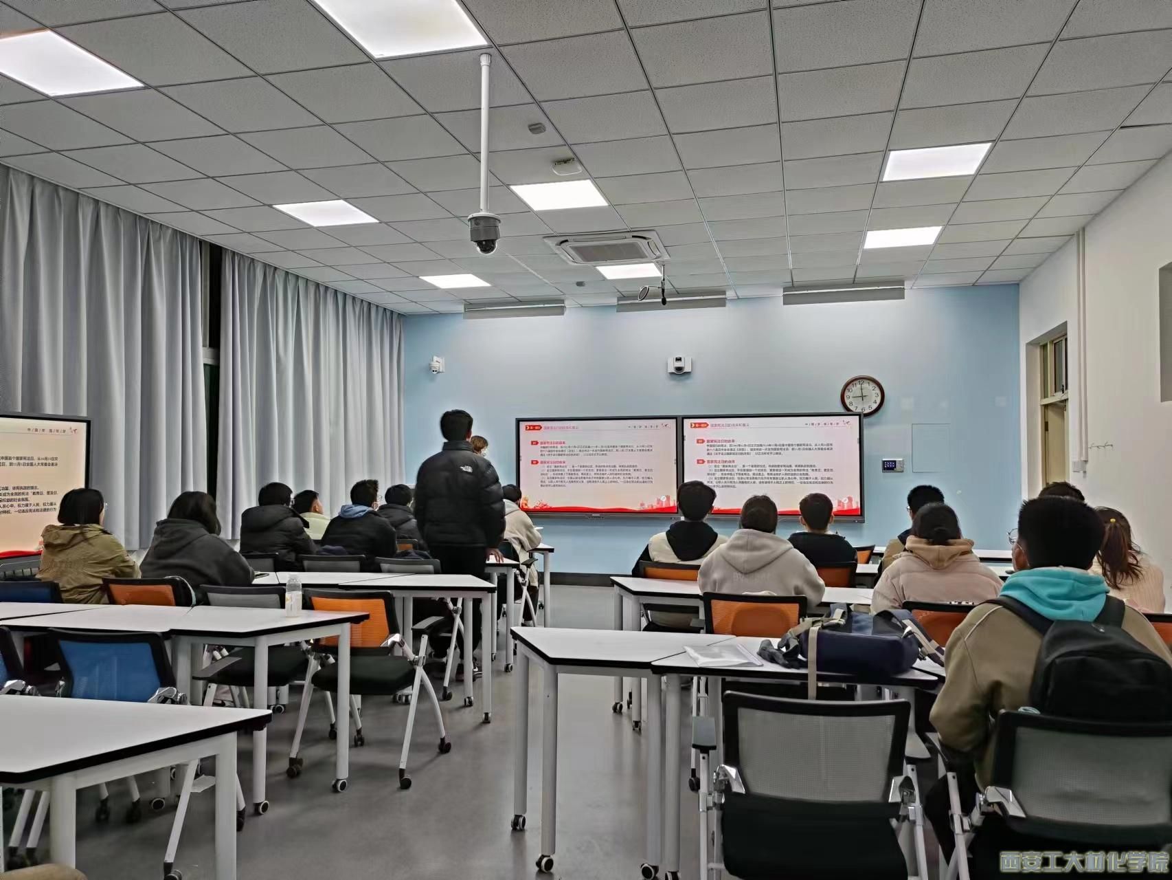 会上,学生干部柯硕带领学生一同学习国家宪法日的由来和意义,并带领与会同学共同学习了新时代全面依法治国取得的历史性成就,与会成员对如何提升当代大学生群体的法治素养展开了热烈的讨论。