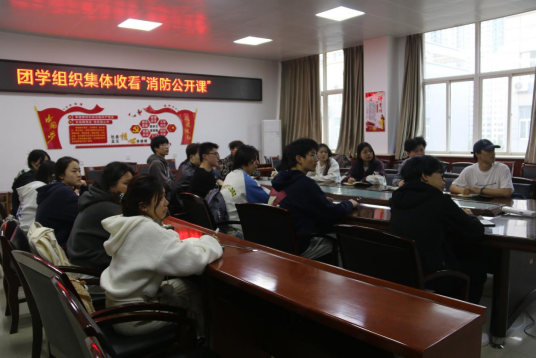组织团委学生干部在学院党建工作室集中观看消防公开课及春季学校火灾疏散逃生演练公开课。