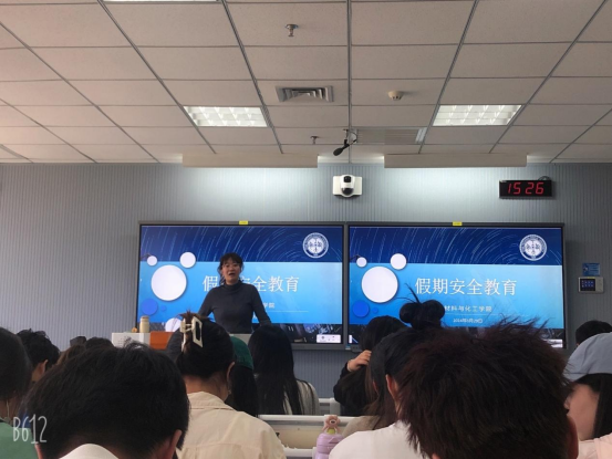 会上,刘强珺首先向学生们告知了相关放假的通知以及课程时间调整。随后,刘强珺从人身安全、财产安全、交通安全以及防溺水、防诈骗等各方面强调假期安全事宜,引导和帮助学生们增强假期防范意识。最后,刘强珺向学生宣传“绿色清明、文明祭扫”,以及森林防火等知识,提醒各班学生假期中要时刻遵纪守法,践行道德规范,自觉维护学校和大学生形象,并在清明假期结束后按时安全地返回学校。