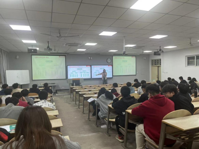 讲座中,主讲教师从考研形势分析、考研目的、院校选择及备考规划等方面进行讲解。她表示随着本科教育的普及,国内本科生比例逐渐递增,本科教育已不再是“精英教育”。在对考研科目进行分析时,主讲教师就历年考研真题进行整合并总结各科学习重点,同时向同学们介绍学科门类的划分。她强调,对于考研目标学校与专业的选择要提前制定,精准把握,慎重选择院校与专业,切勿眼高手低、好高骛远。