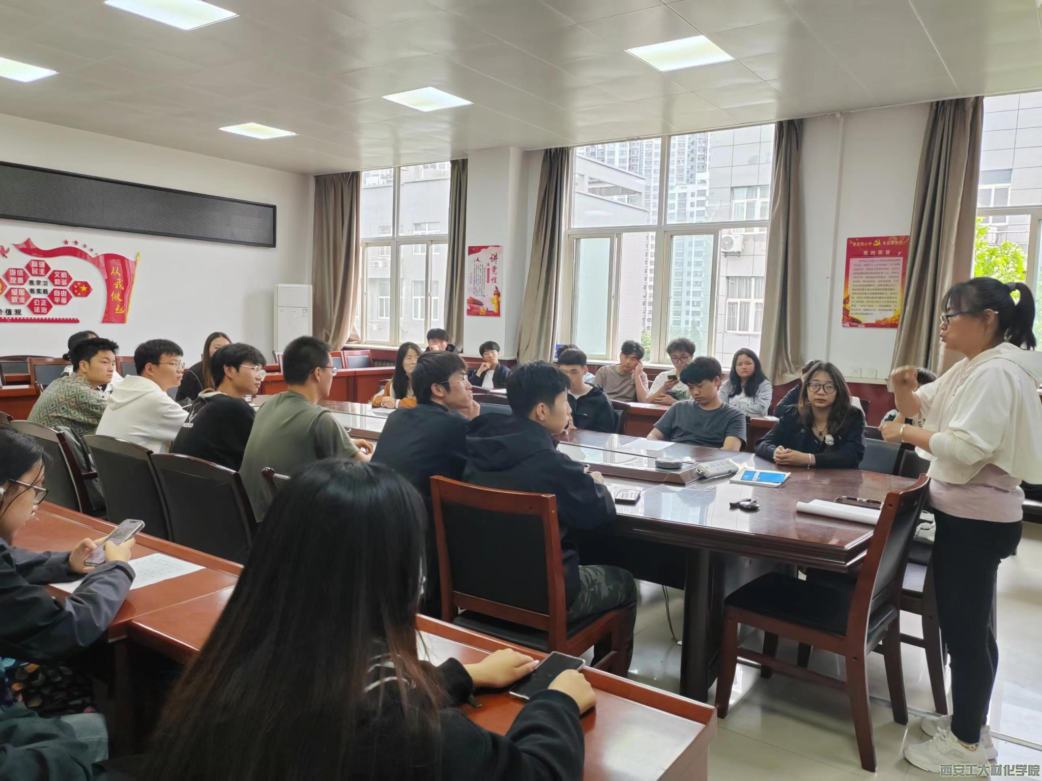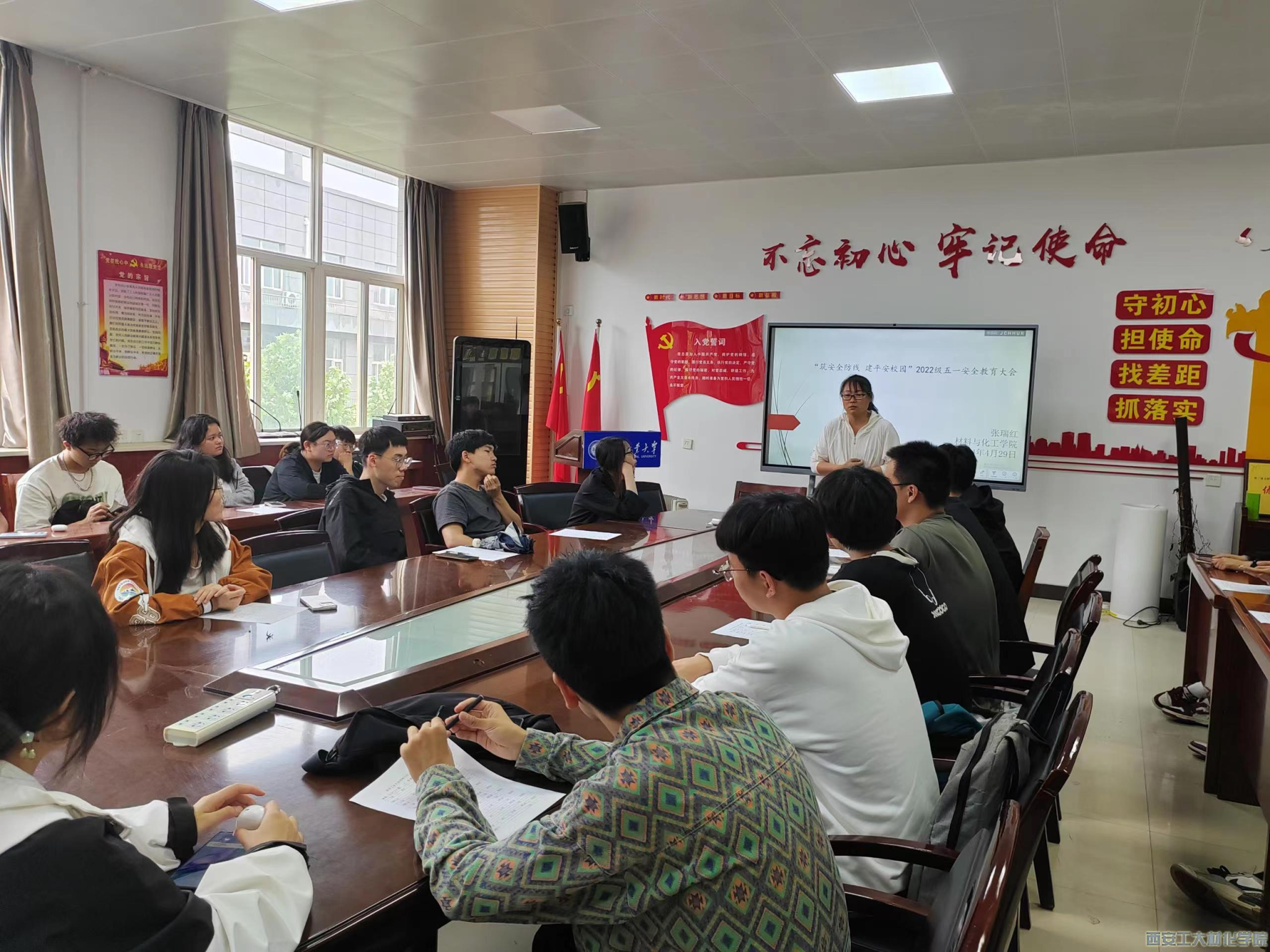 在工3-410召开 “筑安全防线 建平安校园”2022级学生五一安全教育大会。会议由辅导员张瑞红主持,2022级学生参加此次大会。