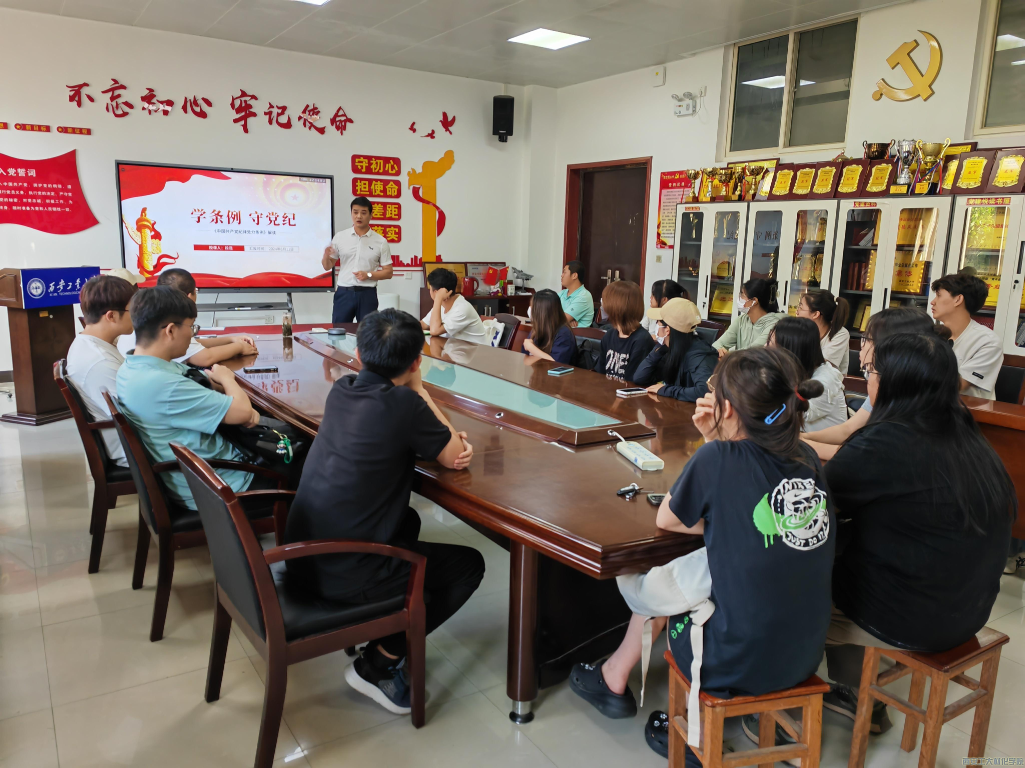 党课开始前,支部书记段强强调党纪教育活动和《中国共产党纪律处分条例》学习的重要性。随后,带领全体党员认真学习《中国共产党纪律处分条例》历次修订情况、修订的主要内容、修订的重要意义以及抓好内容的贯彻执行四个方面,并结合工作实际,紧扣党的政治纪律和政治规矩就如何做一名新时代优秀学生党员的话题,与参会的学生进行交流讨论。
