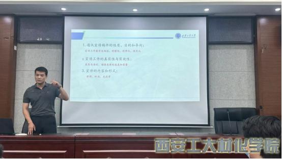 会议第一阶段,段强围绕学生干部综合能力提升重要性进行讲述,并结合工作实际,从活动策划、理论学习、办公技能、通讯稿撰写四个方面进行重点强调和提出要求,其中以通讯稿为例,段强通过列举多篇不同类型的范文,从主副标题、正文分层、结尾意义三个部分进行培训,详细讲解通讯稿的关键要点和提升技巧;会议第二阶段,团委副书记唐明按照学院“安全生产月”活动的安排,带领全体团干部观看安全生产专题宣传片、警示教育片以及学习安全生产的相关知识。会中,大家从自身在宿舍、实验室安全中存在的隐患进行了讨论,纷纷表示安全意味着责任,作为团干部要引导更多的学生对自己和身边同学负责,呼吁大家在平时的学习和生活中高度重视安全工作,提高安全防范意识。
