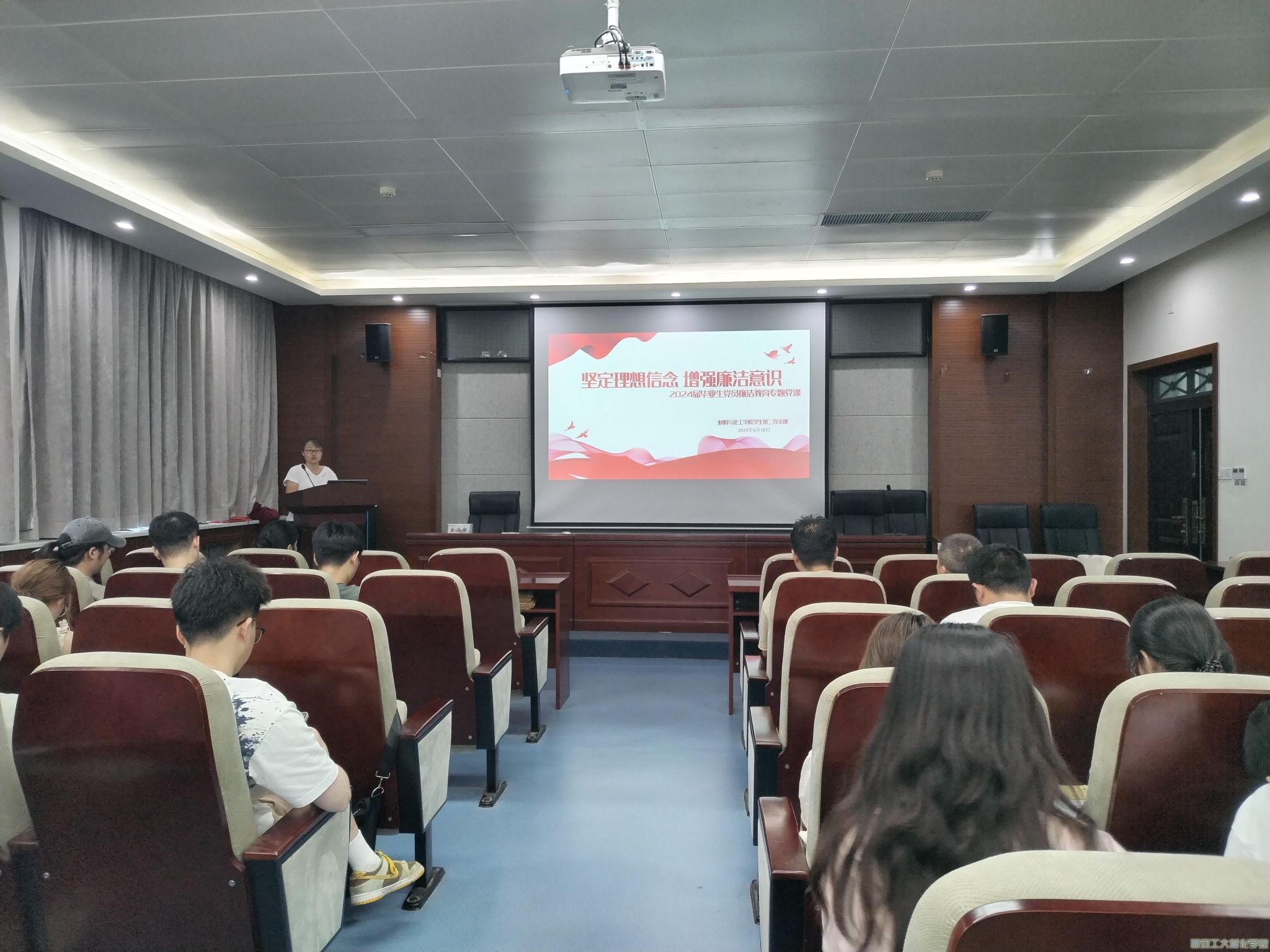 会上,支部书记明确党员要始终坚持以习近平新时代中国特色社会主义思想为指导,坚定理想信念,教育引导党员树立好世界观、人生观、价值观这个“总开关”问题。接着,支部书记从廉洁教育背景与意义、廉洁教育基本原则与内容、大学生党员现状分析及挑战这三个方面对党员进行专题党课教育,旨在提升党员廉洁意识、发挥示范引领作用、成为合格建设者和接班人。最后,支部书记结合案例开展警示教育,弘扬清廉文化,提出新时代党员埋下“真善美”的种子,养成廉洁的好习惯。同时,参会学生集体观看清廉微视频“一念之间”。