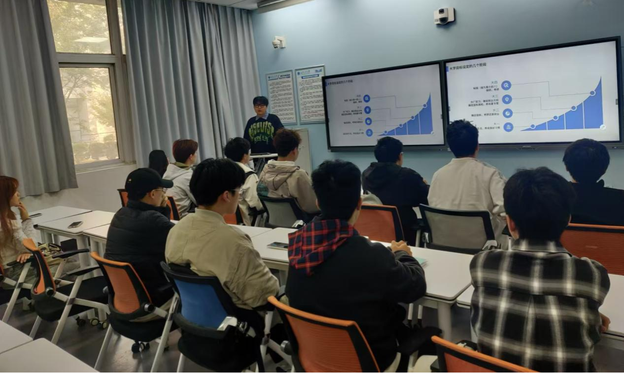 首先,王宝平结合自身经历从求职时间线、个人简历、网申注意事项与笔试面试等方面为大家进行分享,并分享了自己的求职经历和求职体会,提出了一定要利用好秋招契机,早动手的建议,同时向大家介绍了求职信息的来源和方法。分享结束后,王宝平现场回答了同学们提出的问题。