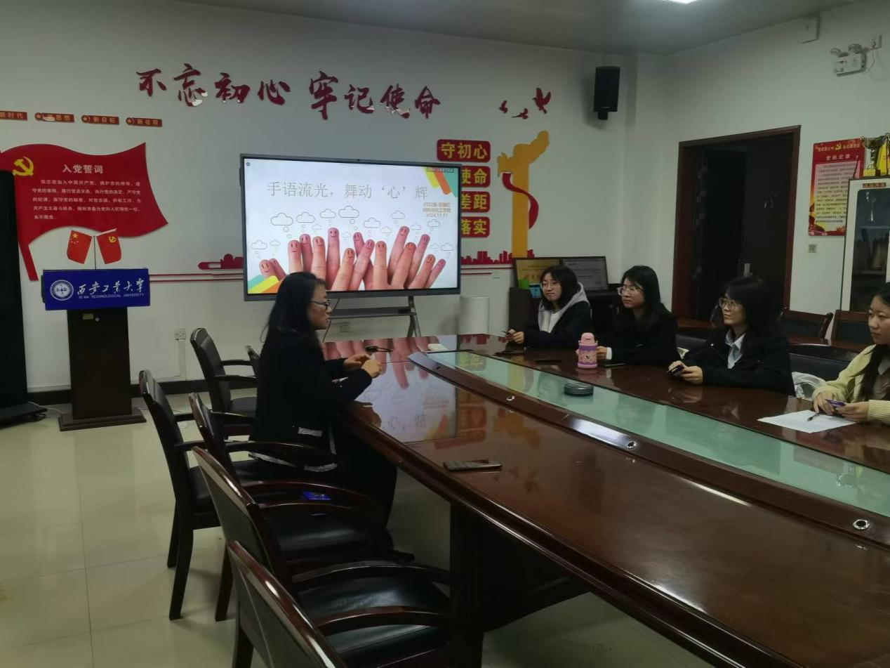 大学生心理健康手语操大赛中取得的优异成绩,2024年11月11日下午,材化学院在工3-410召开表彰大会,本次会议由指导老师张瑞红主持,代表队13名同学参加。