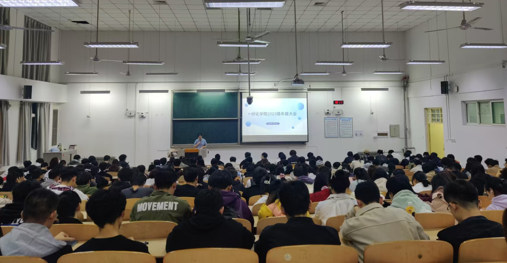 2023级于11月14日在教1-205教室召开学生干部作风建设大会暨学风建设推进会。2023级全体学生参会,2023级学生辅导员乔娜主持会议。