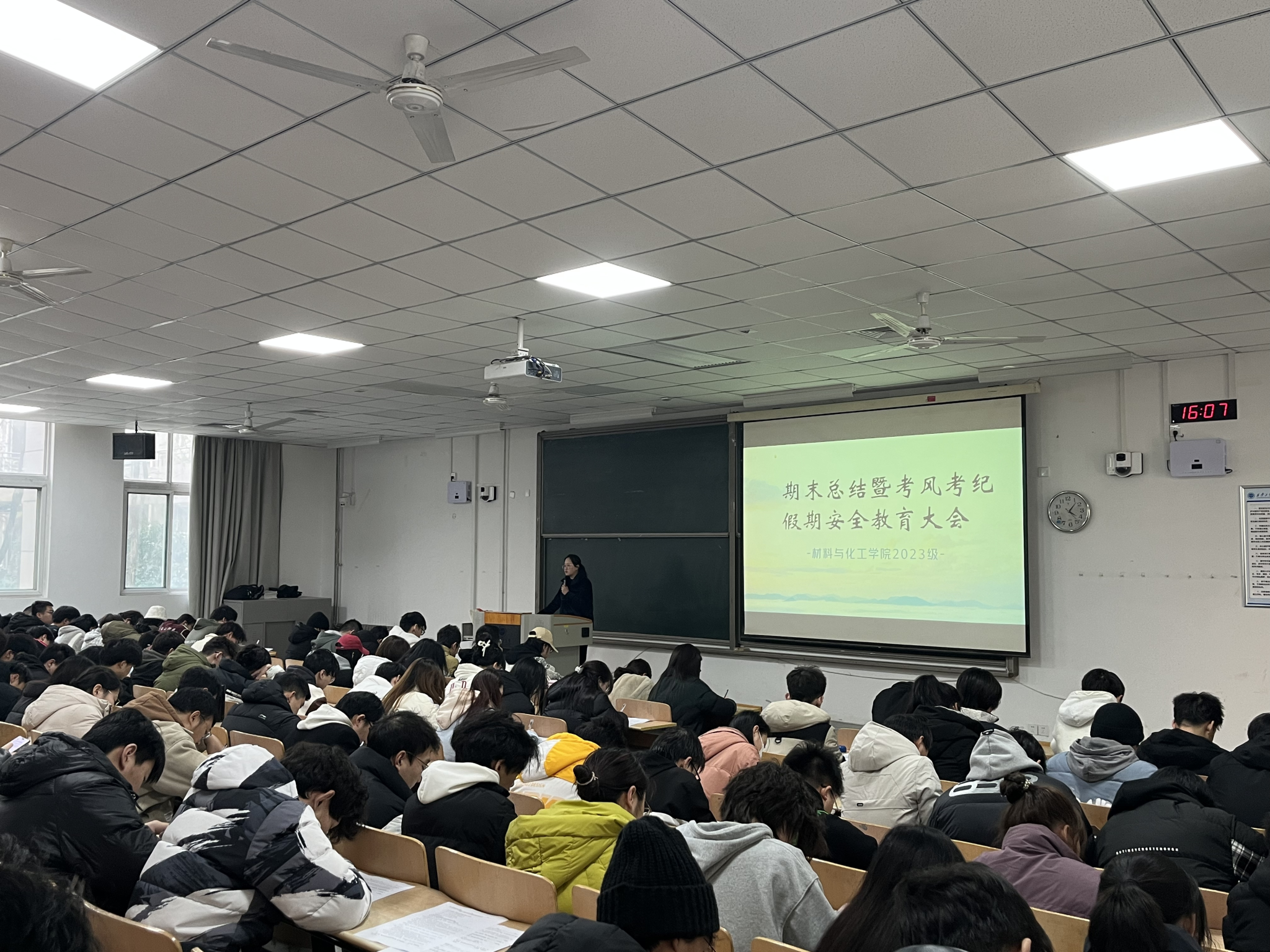 2023级召开期末总结暨考风考纪、假期安全教育大会,针对重要问题进行安排部署,为学期末各项学生工作的顺利推进筑牢根基。全体2023级学生参加,2023级学生辅导员乔娜主持会议。