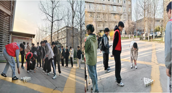 在兵器馆外,“空气炮击纸杯”的游戏热闹非凡。参与者们手持自制的纸杯空气炮,全神贯注地瞄准由纸杯搭建而成的“纸杯堡垒”。这场游戏将精准度与趣味性完美融合,扣人心弦。每当有人成功击倒目标,那瞬间坍塌的纸杯就会引发一阵欢呼,热烈的氛围迅速蔓延。而面对失败的尝试,大家也不会陷入失落,因为身旁的同学们总会及时送上鼓励与支持,欢声笑语此起彼伏,传递着青春的活力与温暖。
