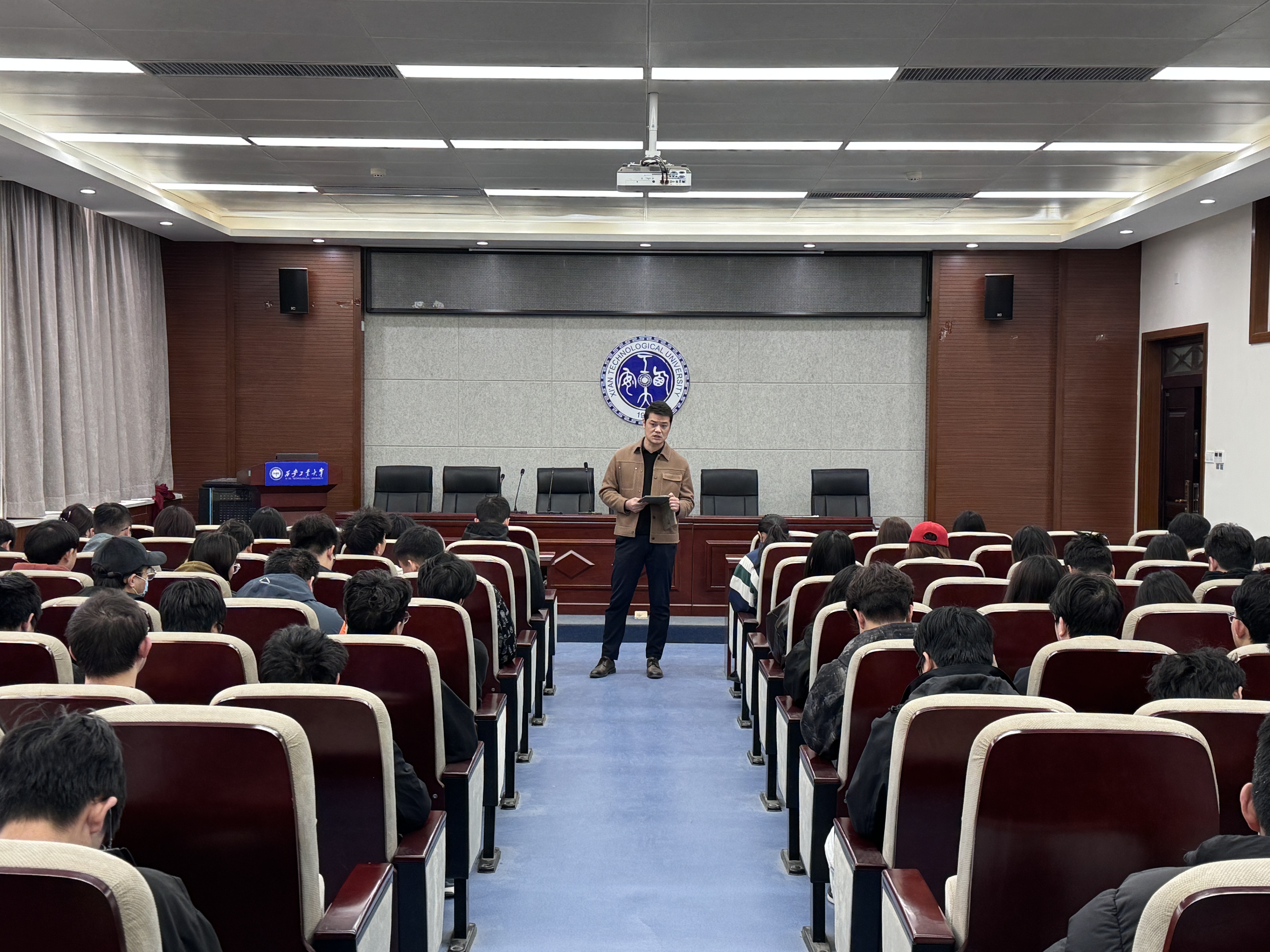 于工4-204开展2021级毕业生年级大会,会议主要传达毕业季相关工作安排及清明节假期安全教育,辅导员段强和全体学生参加会议。