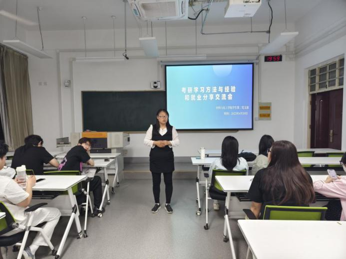 会上,支部书记详细介绍了支部内两位优秀成员的经历,一位考研上岸、一位斩获理想工作,鼓励大家以身边榜样为灯塔,在精进学业的同时,注重综合素质的全方位锤炼。接着,两位成员分享了经验,拟录取到北京工业大学的韩迪同学结合自身考研经验,从院校选择、备考经验、心态调整三个方面详细介绍了考研学习过程,强调了找到适合自己的复习节奏和方法的重要性,希望大家可以坚持到底,一战上岸。接着,汪巳堯同学回顾自己的求职经历,通过求职准备、简历制作、面试技巧、就业签约等为同学们分享了自己经验,在求职前,大家应提前深入了解就业市场的动态与趋势,积极参加各类招聘会,学习并掌握面试应答技巧,做好充分的求职准备。在求职过程中,若遭遇挫折,切勿气馁,要及时调整自身心态。同学们深以为然,纷纷表示受益匪浅。最后,支部书记希望通过两位成员经验的分享会,帮助大家汲取经验、结合自身发展,鼓励考研就业皆坚定信心、脚踏实地,勇创佳绩。