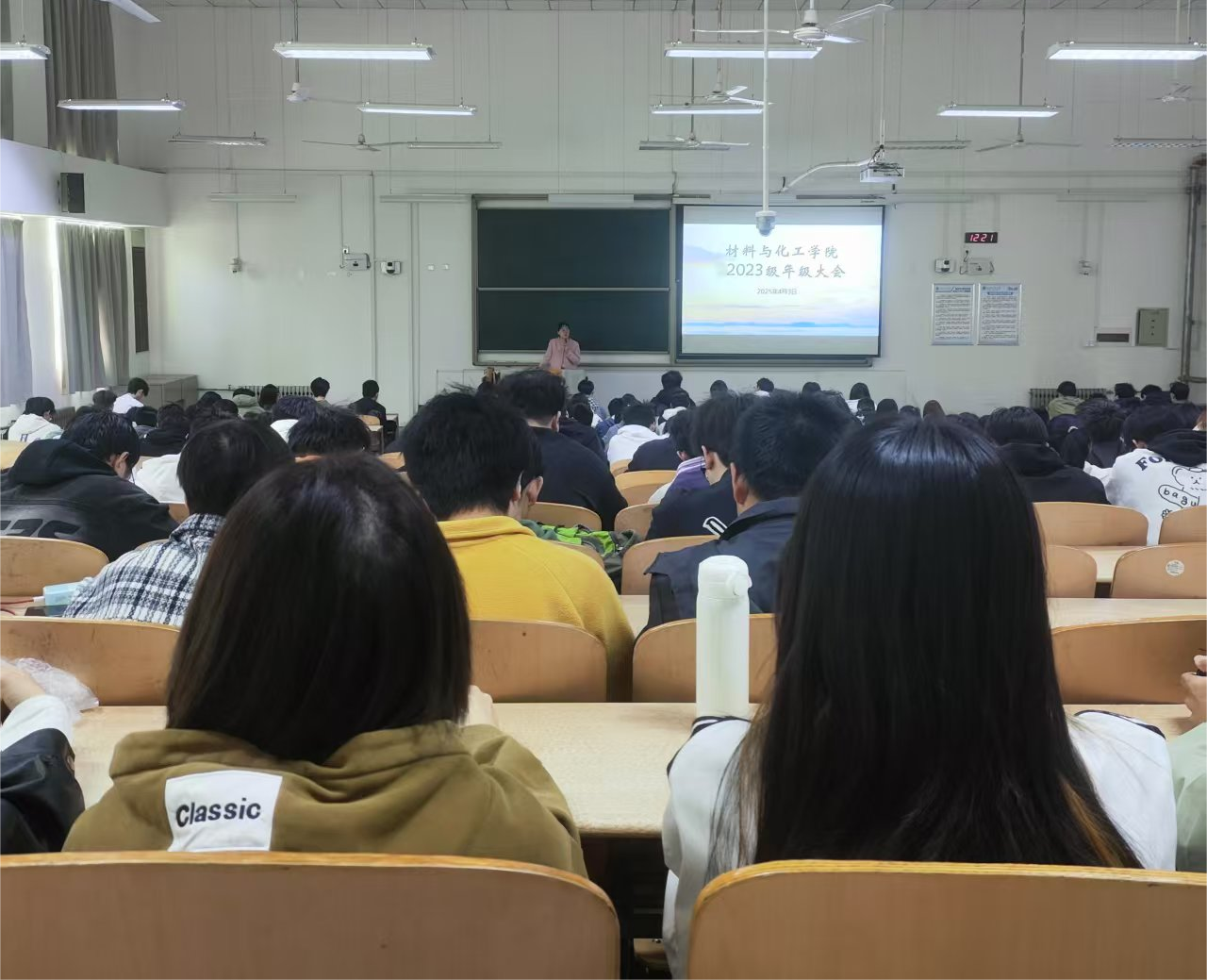 2023级召开清明假期安全教育大会。辅导员乔娜及全体2023级学生参加会议,围绕出行安全、财产安全、网络安全、宿舍安全等重点内容进行全面部署与教育引导。