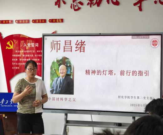 为传承科学家精神,汲取奋进力量,2025年5月22日,材化学院学生第二党支部在工3-410开展了师昌绪精神学习会。支部全体党员参与本次学习,在榜样事迹中感悟初心使命,筑牢理想信念根基。