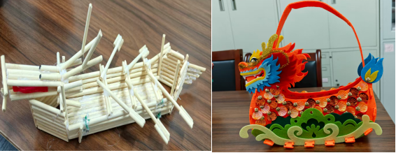 参赛学子们从龙舟的历史文化内涵出发,结合材料学、化工原理等专业知识,在模型的材料选择、结构设计、外观装饰等方面反复琢磨、精益求精。他们选用环保且性能适宜的材料,通过精准的切割、拼接和打磨,将龙舟的形态与细节完美呈现,既体现了对传统龙舟文化的传承,又融入了现代工艺的创新元素。