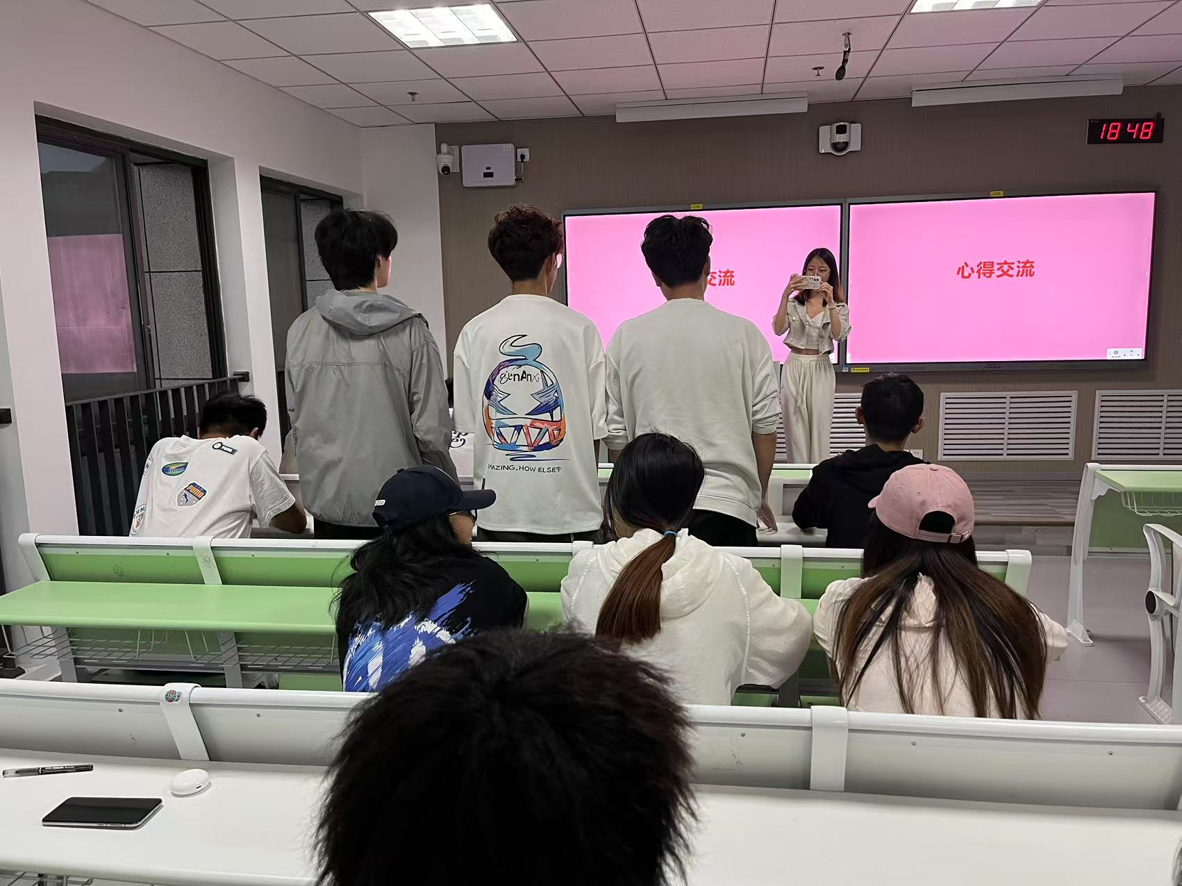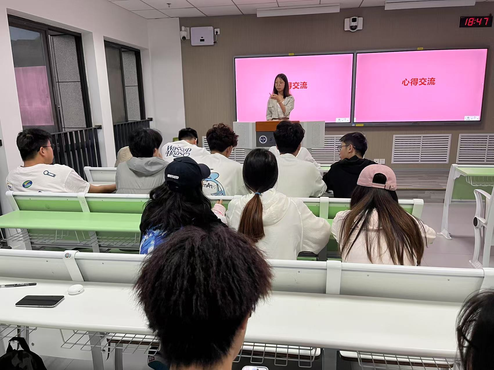 活动以“文化分享+深度研讨+影视浸润”推进让传统文化学习兼具理论深度与情感温度。开场“你记忆中的中秋是什么样的?”互动中,同学们分享庭院赏月、听“嫦娥奔月”传说、家乡“烧塔”“兔儿爷”习俗等故事,读懂中秋“团圆和谐、敬老爱亲”内涵。研讨环节,大家结合杜甫、苏轼经典诗句,及戍边战士、航天工作者中秋坚守案例,达成“中秋是连接个人与国家精神纽带”的共识。随后观看的《中国传统节日·中秋》纪录片,让同学们感受中秋文化的历史脉络与生命力。