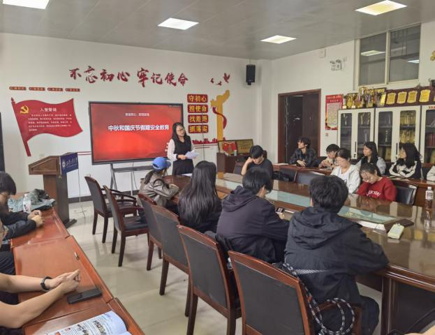 于2025年9月29日在工3-410召开了2022级中秋国庆假期安全教育会。会议由辅导员张瑞红主持,2022级学生参加。