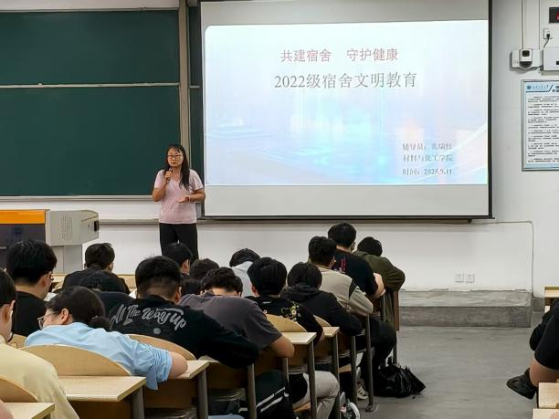 在教1-101召开了学生宿舍文明教育会议。会议由辅导员张瑞红主持,2022级全体学生参与。