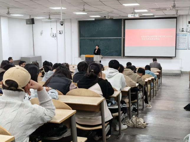 在教1-104召开2026届本科就业工作启动大会暨2025届就业情况总结汇报会。材化学院党委书记陈卫星、党委副书记梁艳峰、毕业班辅导员张瑞红及2026届全体本科毕业生参会。
