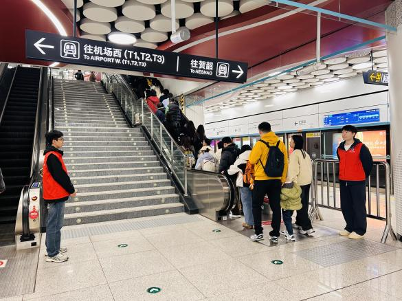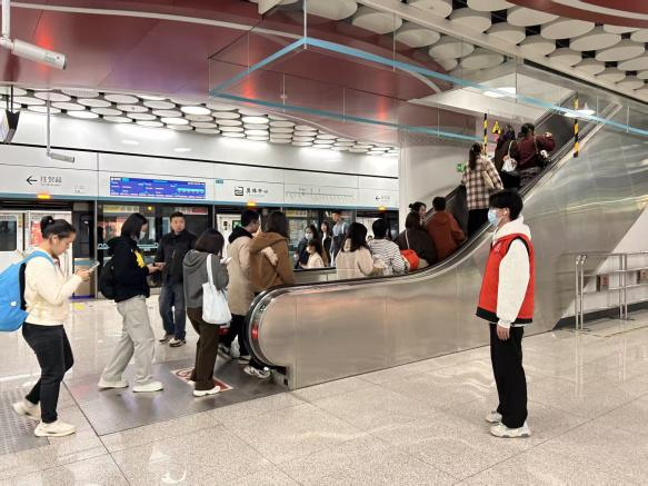活动当日,志愿者们身着统一志愿服装,在地铁进站口、售票机旁、安检处、换乘通道等关键区域分工协作,有条不紊地开展服务工作。在售票机旁、进出站闸机口、自动扶梯及站台等关键位置,志愿者们耐心协助乘客购票、主动疏导人流、耐心引导乘客有序排队上下扶梯、提醒安全注意事项并为有需要的乘客提供路线指引。同时,志愿者们还积极向乘客宣传文明乘车规范,提醒大家保管好随身物品,共同维护安全、有序、文明的乘车环境。活动过程中,支部成员们始终面带微笑,主动热情,展现了新时代大学生党员良好的精神风貌和责任担当。