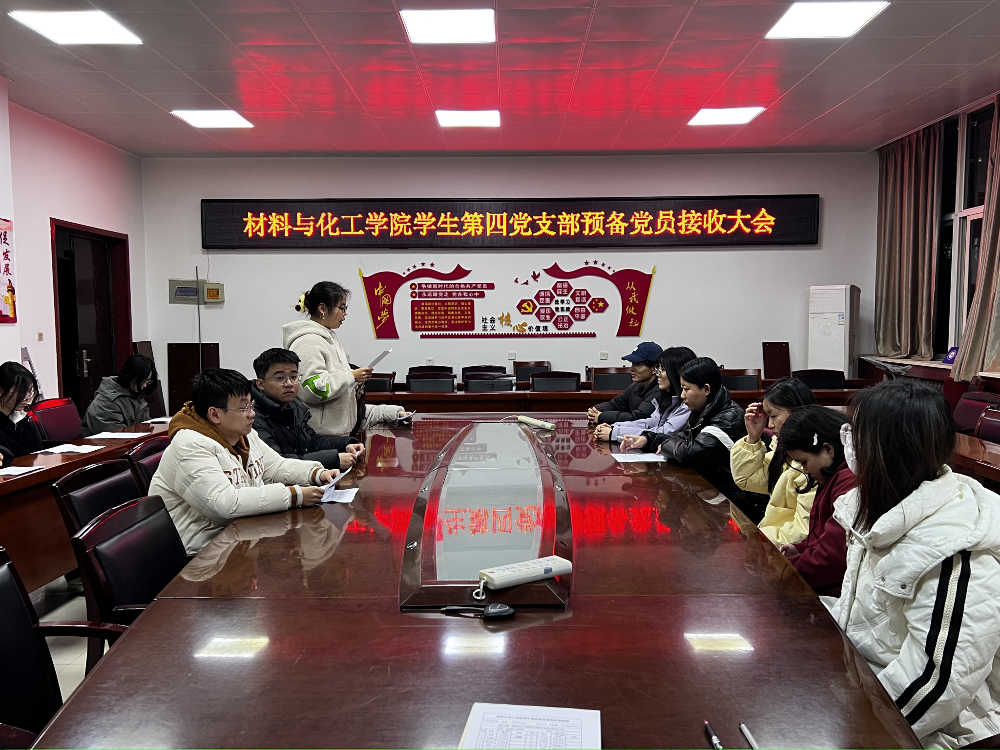 学生第四党支部在工3-410严格按照党组织发展工作要求,隆重召开预备党员接收大会,支部全体党员参会,会议由党支部副书记冯鑫媛主持。