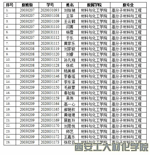 91猫先生 金属材料工程(卓越)班学院拟录取学生名单公示25(人)