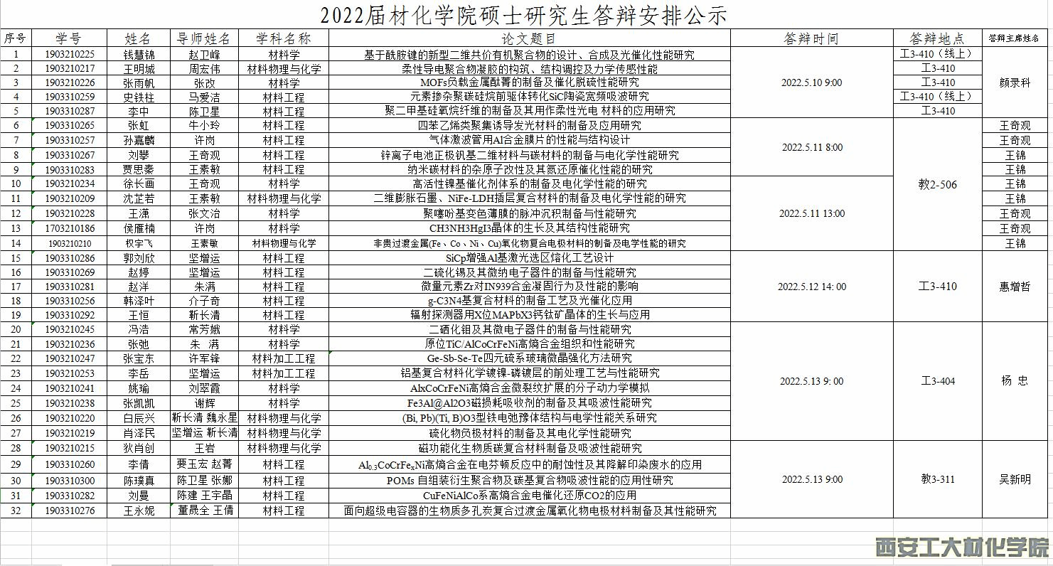 2022届材化学院硕士研究生答辩安排公示