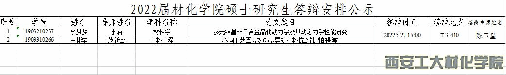 2022届材化学院硕士研究生答辩安排公示
