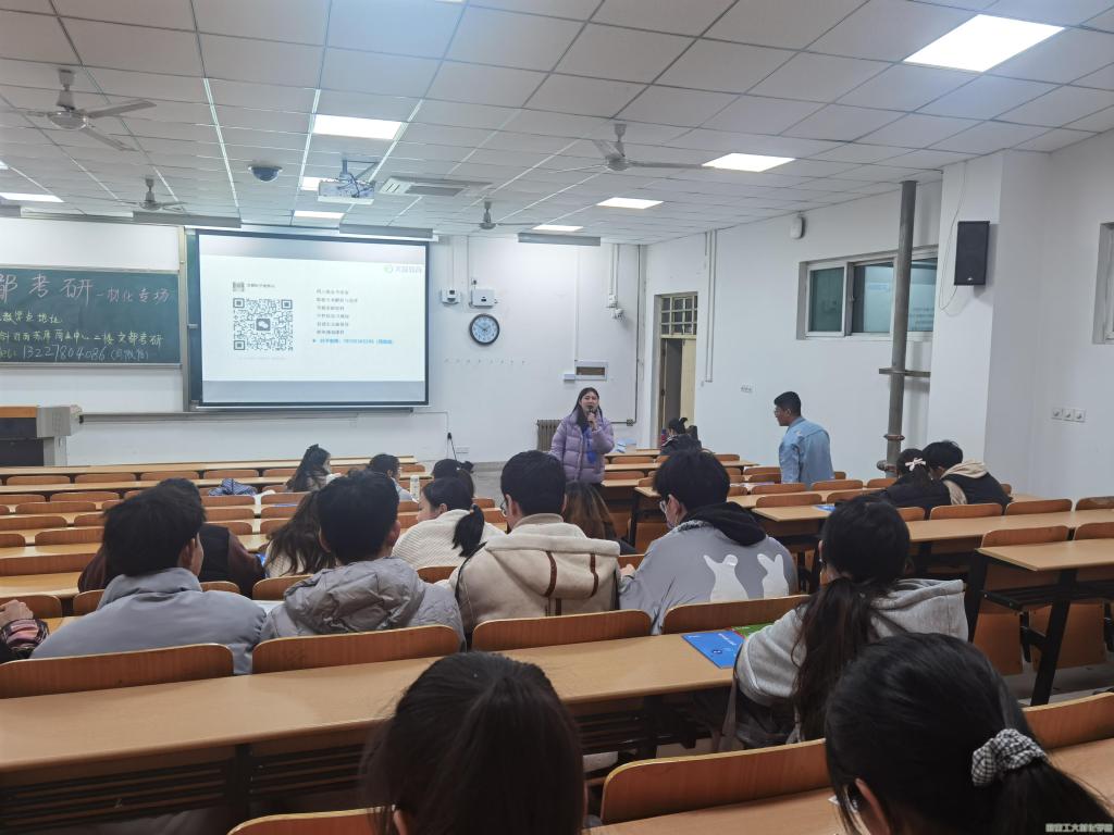 学生的工科特点,带着大家分析近两年的考研人数、考研趋势、扎堆现象等方面,引导学生要科学合理确定自己的考试方向,并对在场学生的顾虑进行解答。关于材料类学生的备考规划,赵老师从英语、政治、高数、专业课讲解详细的学习时间分配,重点强调了英语的重要性以及阶段性巩固方法。在讲座中,赵老师结合自身的经验,嘱咐在场同学一定要坚持、有耐心的面对考研,踏实的走好自己的考研之路,只有目标规划明确,才能一往无前。